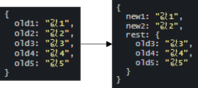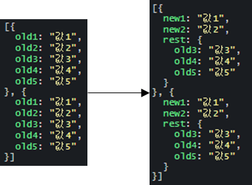 ({old1: new1, old2: new2, ...rest}) => {